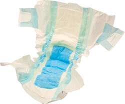 Used diapers are not recyclable. Wrap dirty diapers before throwing them out to minimize odours.