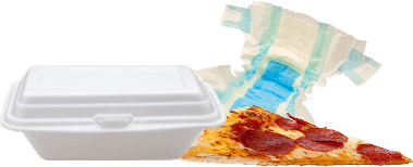 Leftover pizza, greasy pizza boxes and food scraps can’t be recycled. Throw them in the garbage.