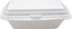 Styrofoam containers for take-out food is not accepted for recycling at this time. Throw them out.
